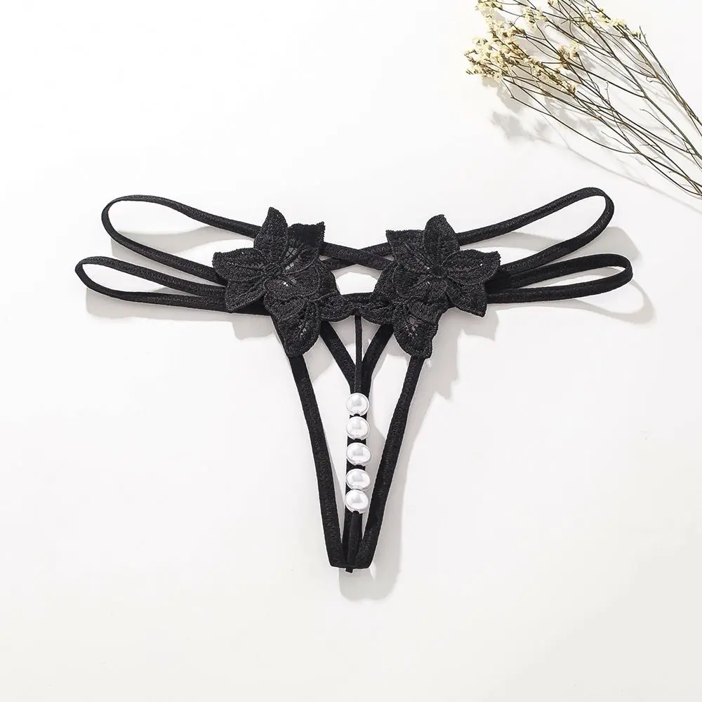 2023 Large Size Sexy Thong Panties Transparent Temptation Pearl Massage Crotchless T Pants Woman Underwear Lingerie