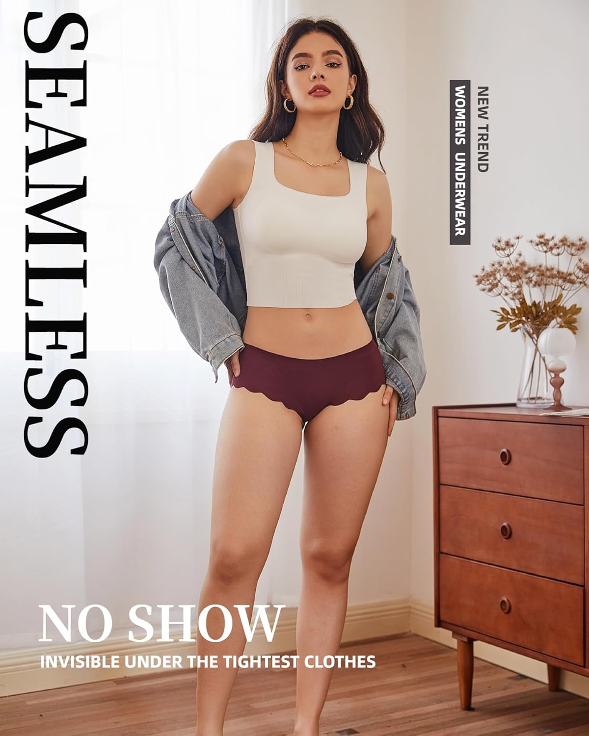 6 pack Seamless Underwear for Women Sexy Low Rise Hipster Wave Edge No Show Bikini Panties Womens Cheeky S-XL