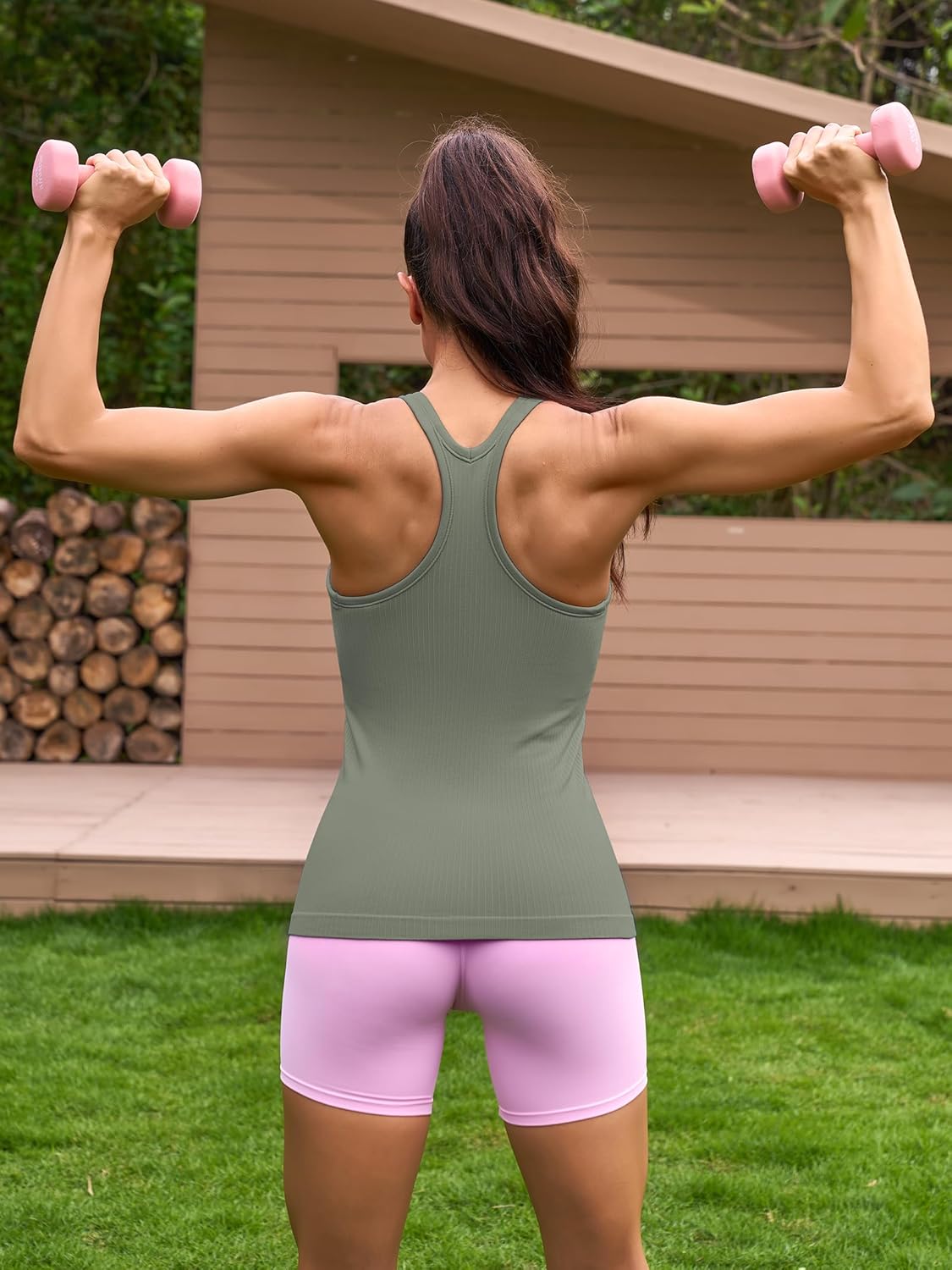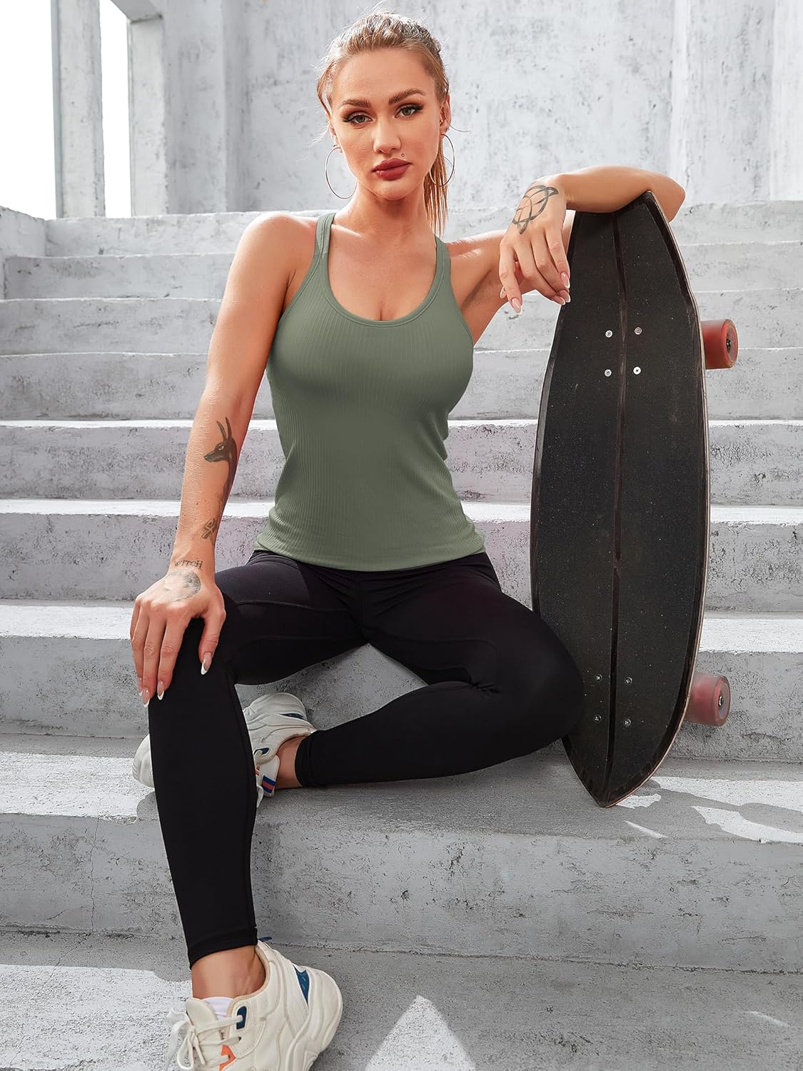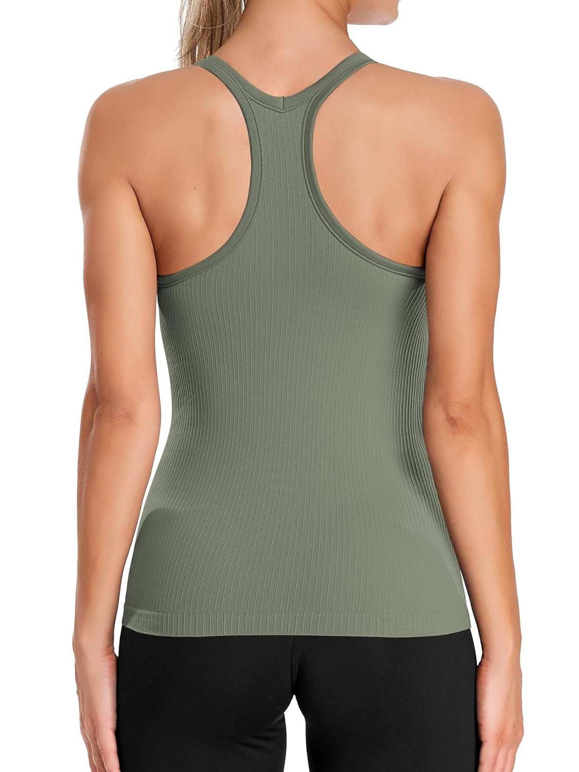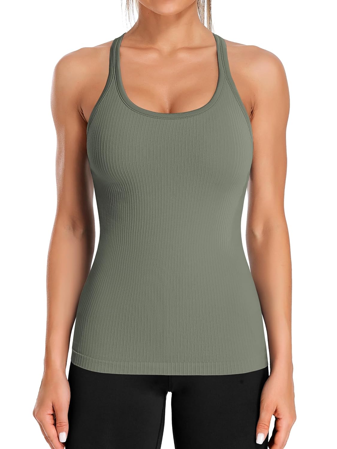 ATTRACO Ribbed Workout Tank Tops for Women with Built in Bra Tight Racerback Scoop Neck Athletic Top