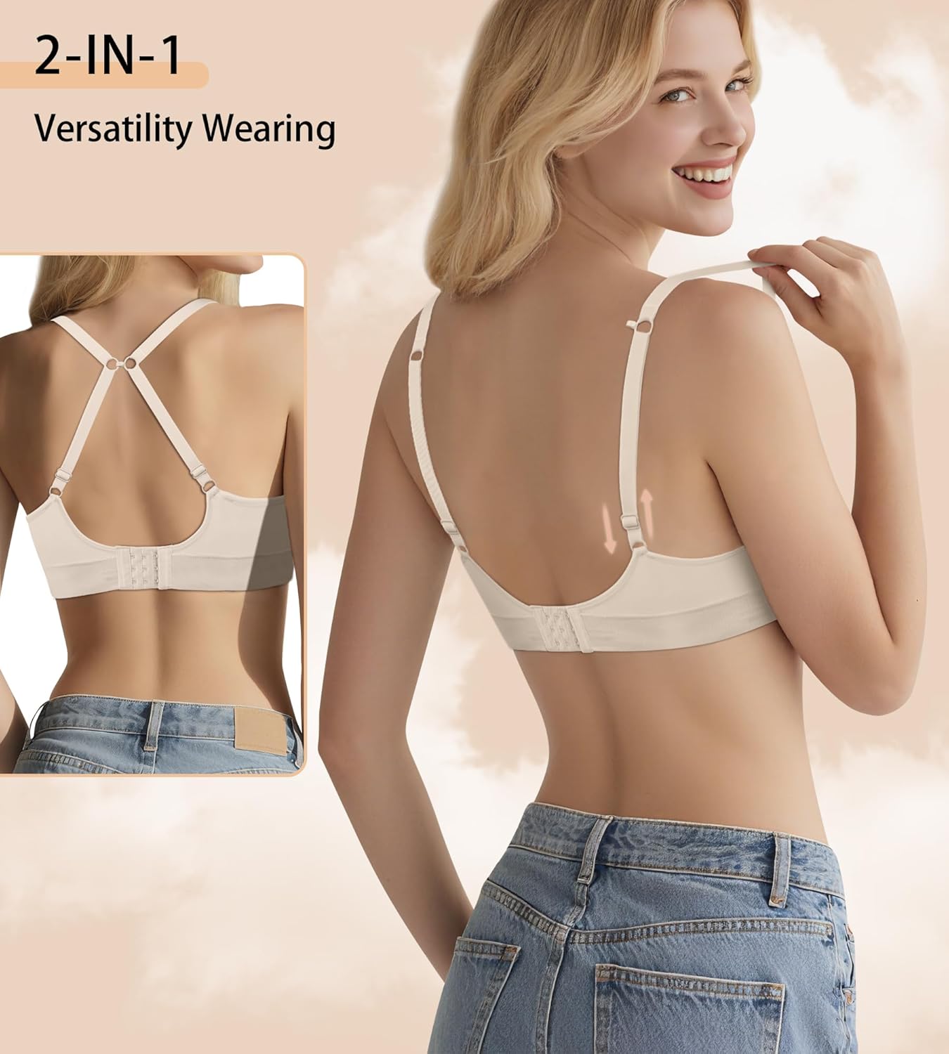 Bras for Women No Underwire – Wireless Comfortable Plunge Full Coverage Bralette Plus Size Sports Tshirt Bra