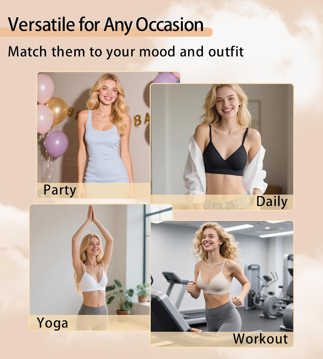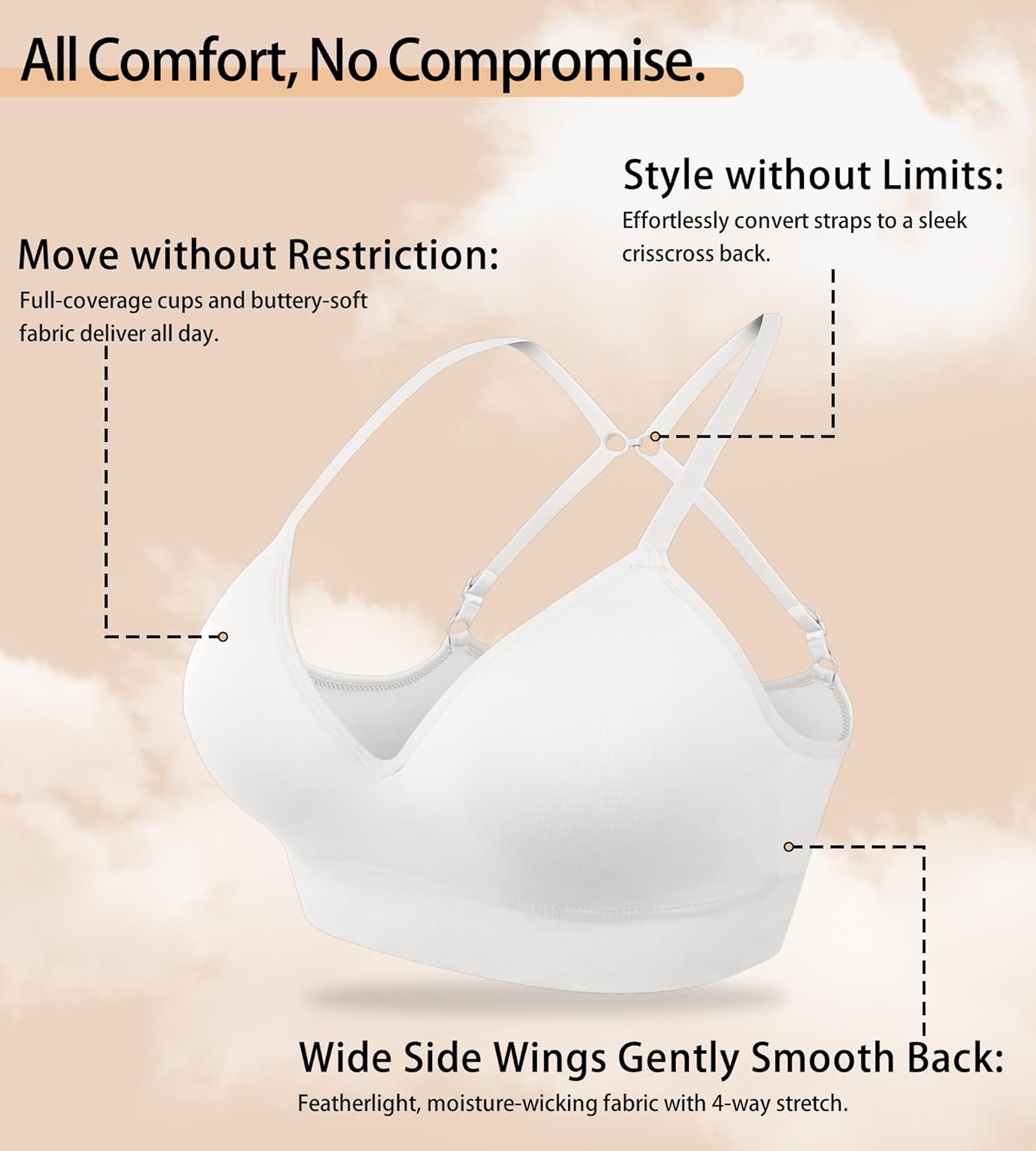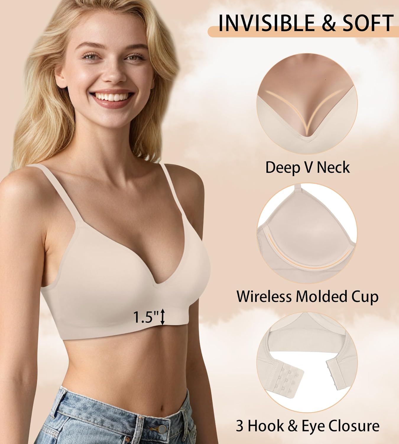 Bras for Women No Underwire – Wireless Comfortable Plunge Full Coverage Bralette Plus Size Sports Tshirt Bra