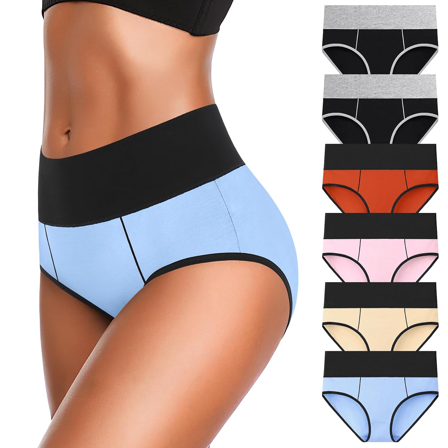 Eiggam Underwear for Women Cotton High Waist Panties Full Coverage Briefs Soft Strech Ladies Breathable Panties-Multi Pack