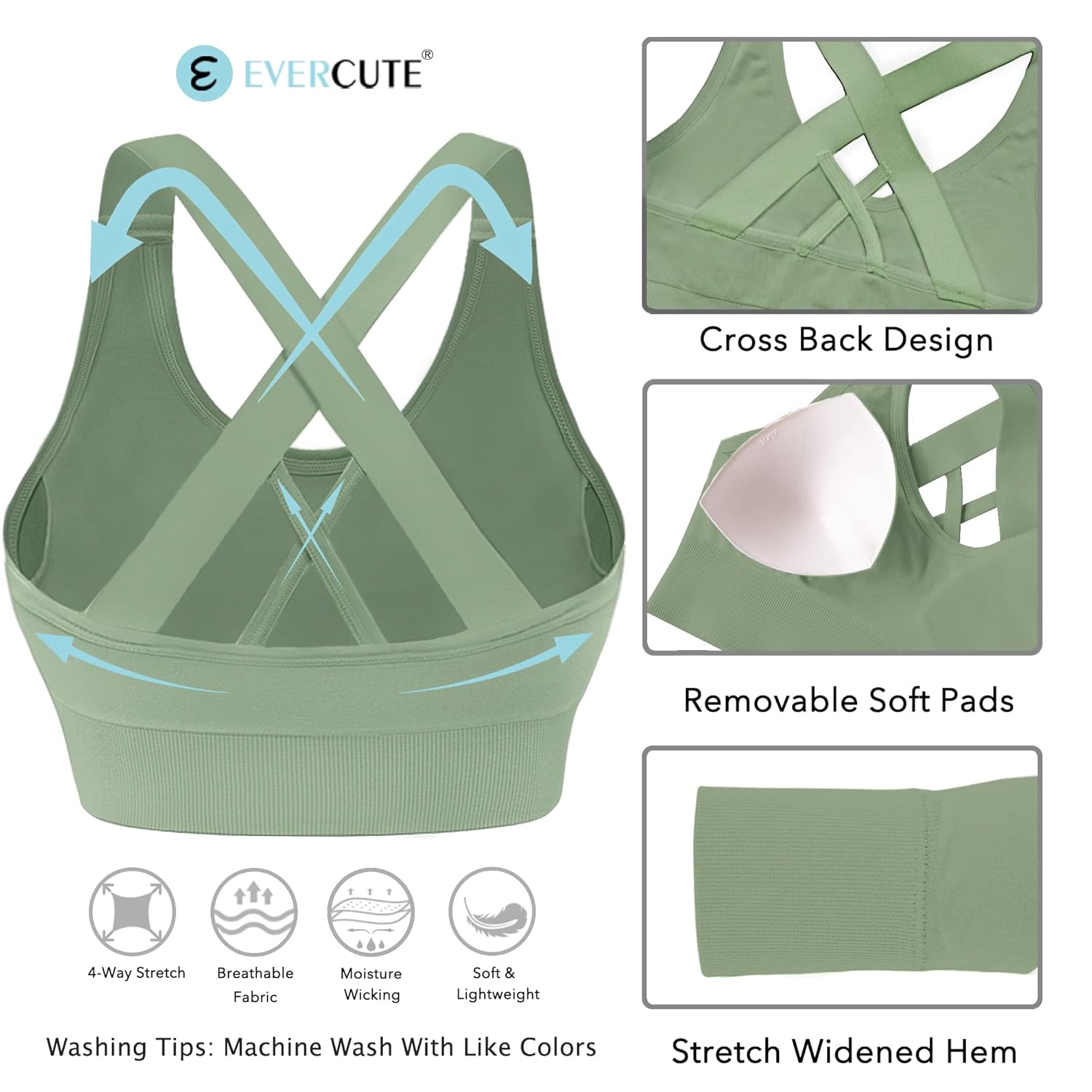 Evercute Sports Bra for Women Padded Medium Support Criss Cross Strappy Bras Seamless High Impact Yoga Exercise Athletic Bras