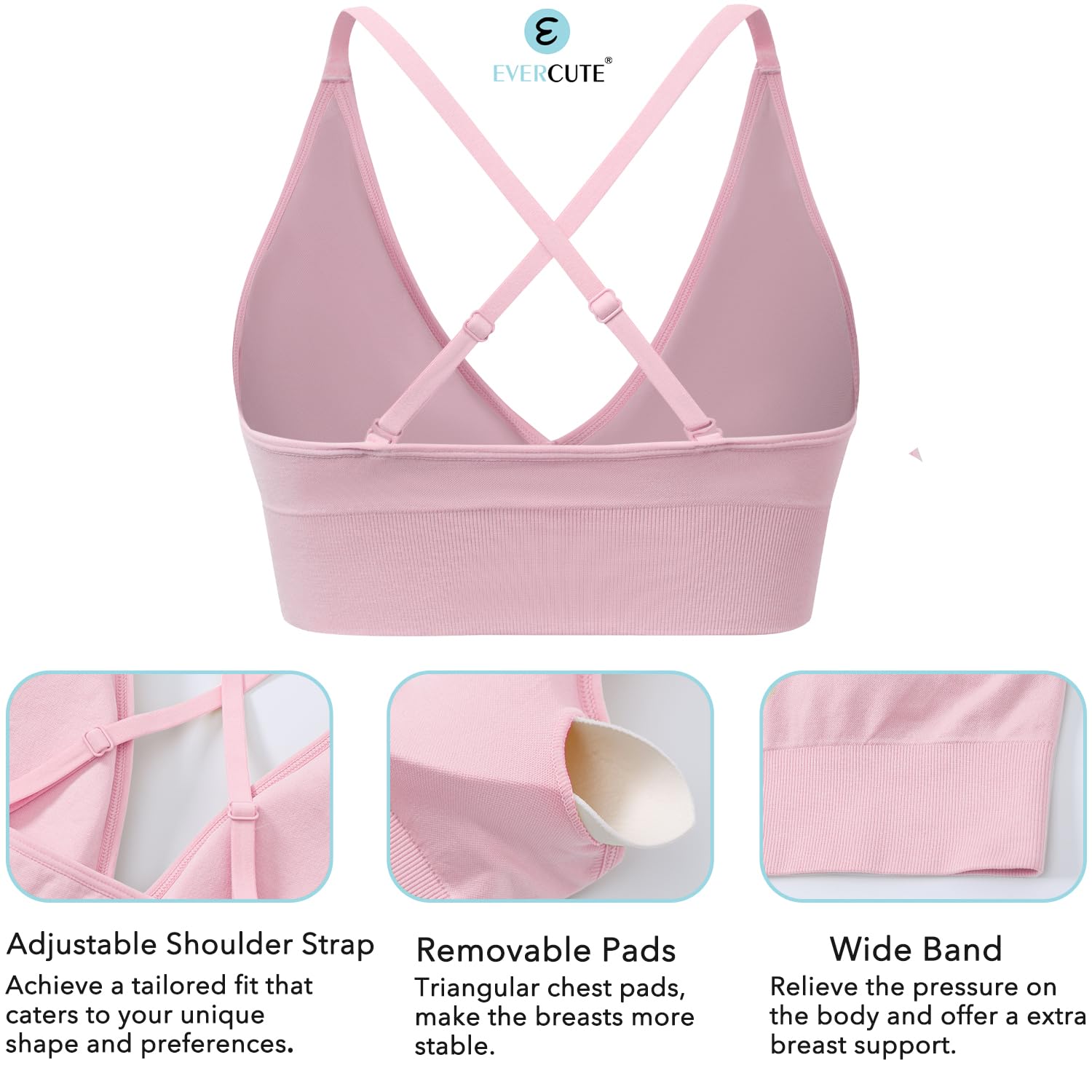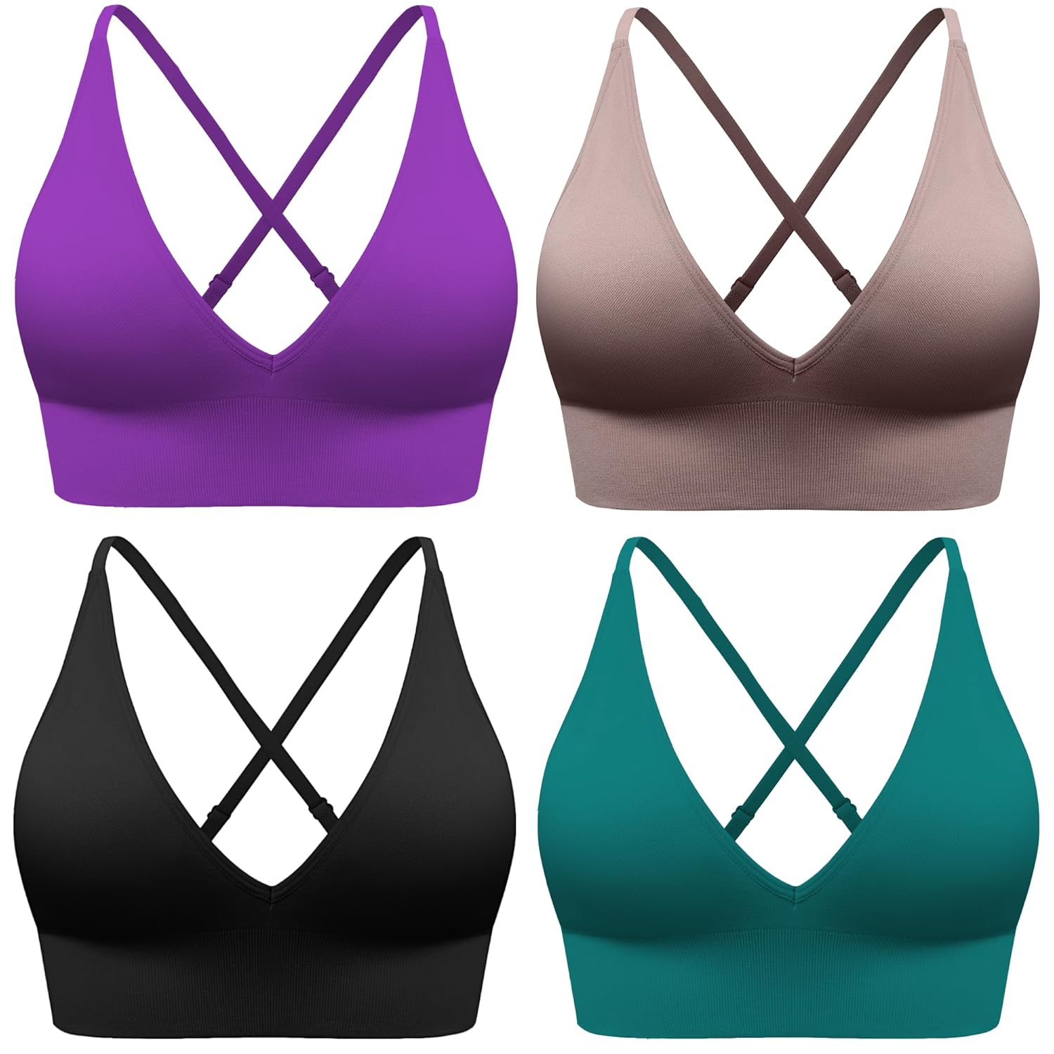 Evercute Women’s Sports Bras Adjustable Deep V Neck Bras Wireless Spaghetti Strap Criss Cross Padded Low Support Sexy Bras