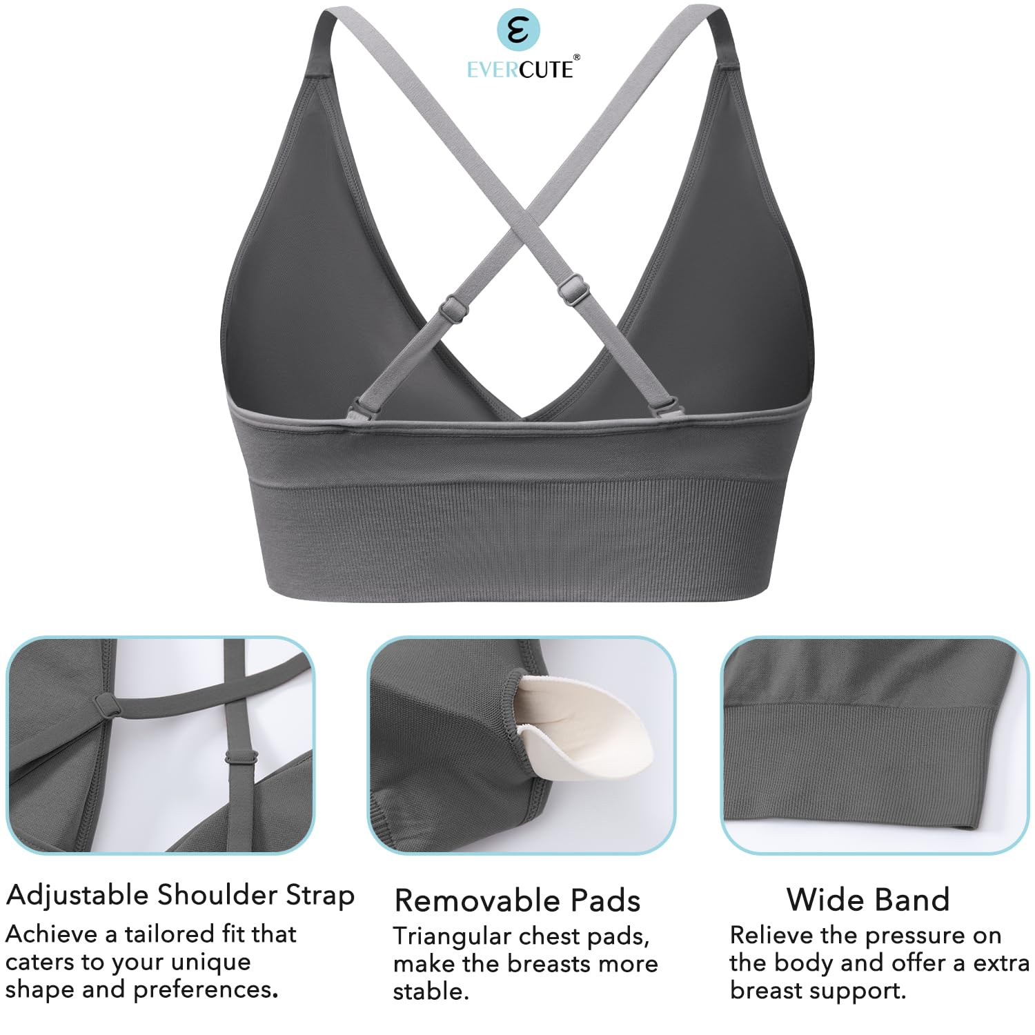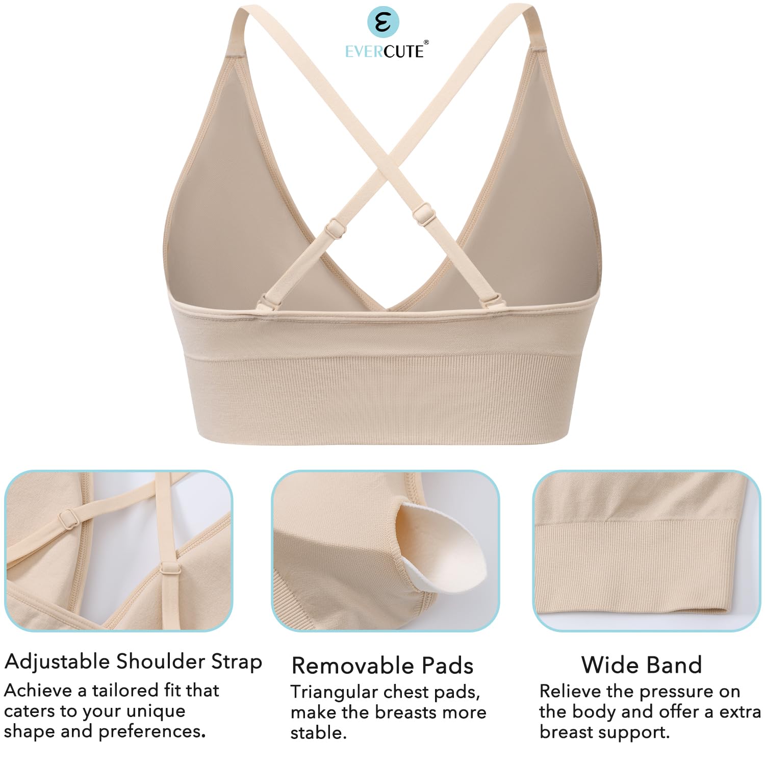 Evercute Women’s Sports Bras Adjustable Deep V Neck Bras Wireless Spaghetti Strap Criss Cross Padded Low Support Sexy Bras