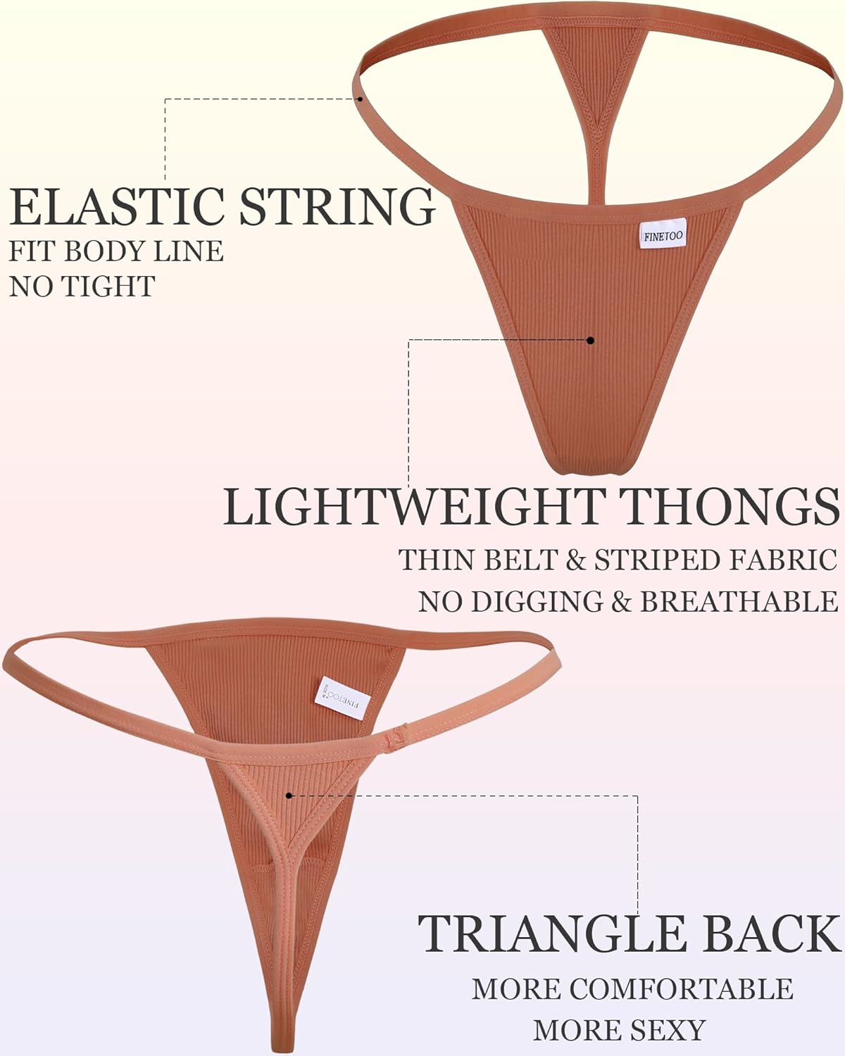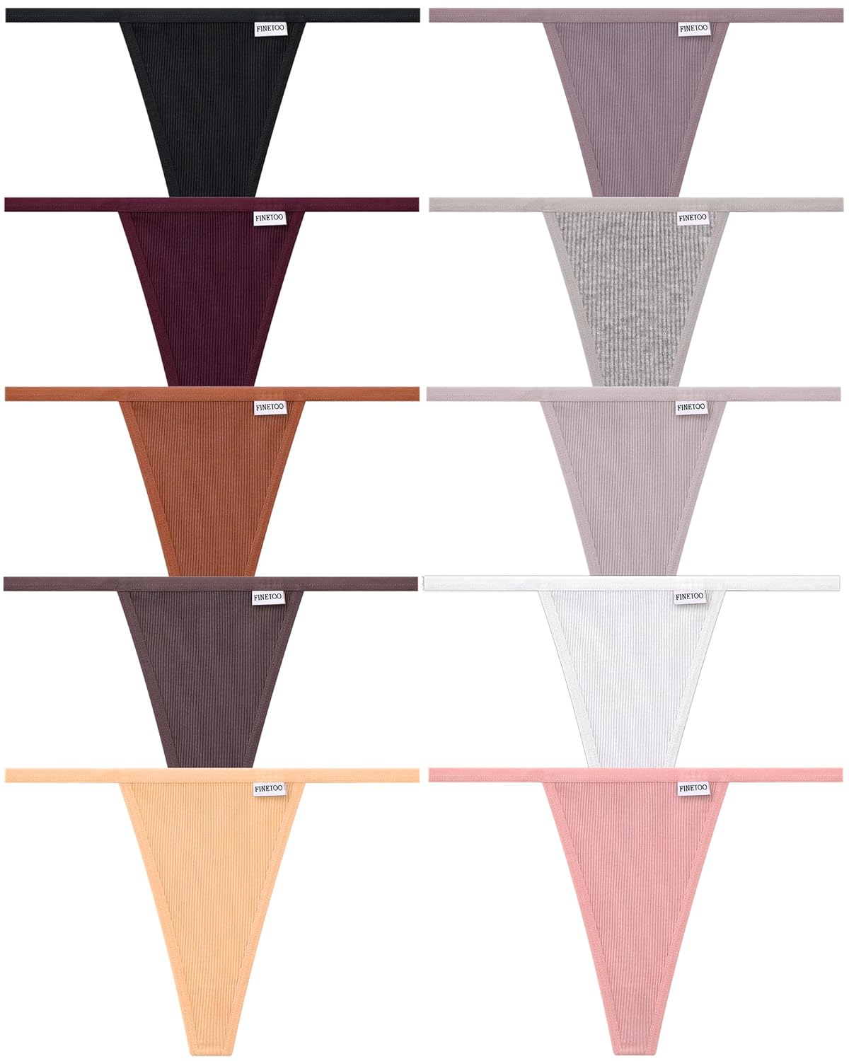 FINETOO 10 Pack G-String Thongs for Women Cotton Panties Stretch T-back Tangas Low Rise Hipster Underwear Sexy S-XL