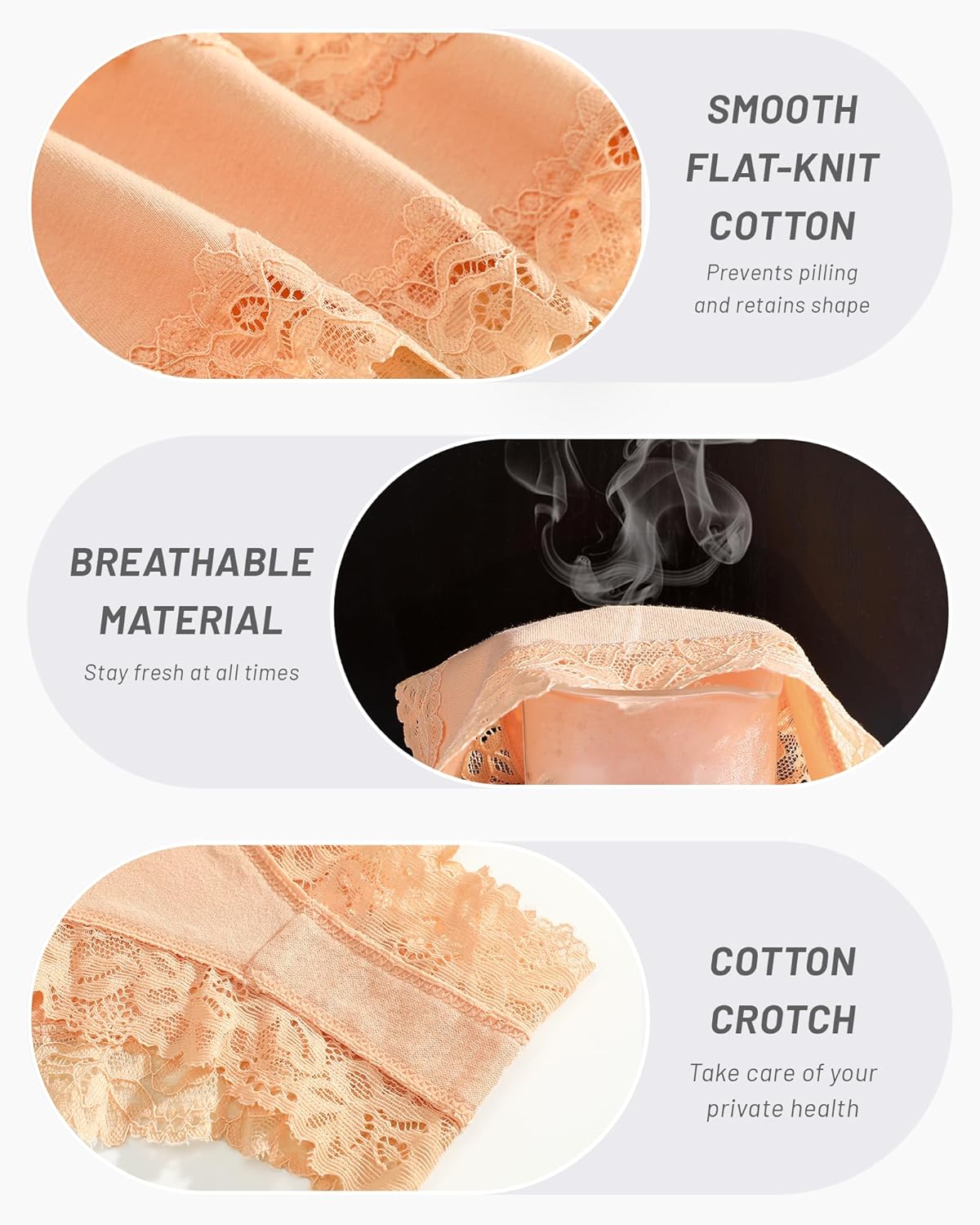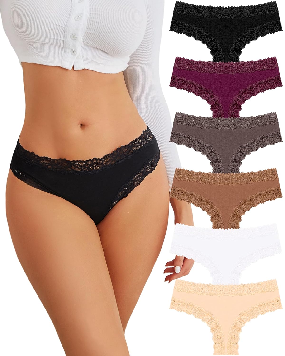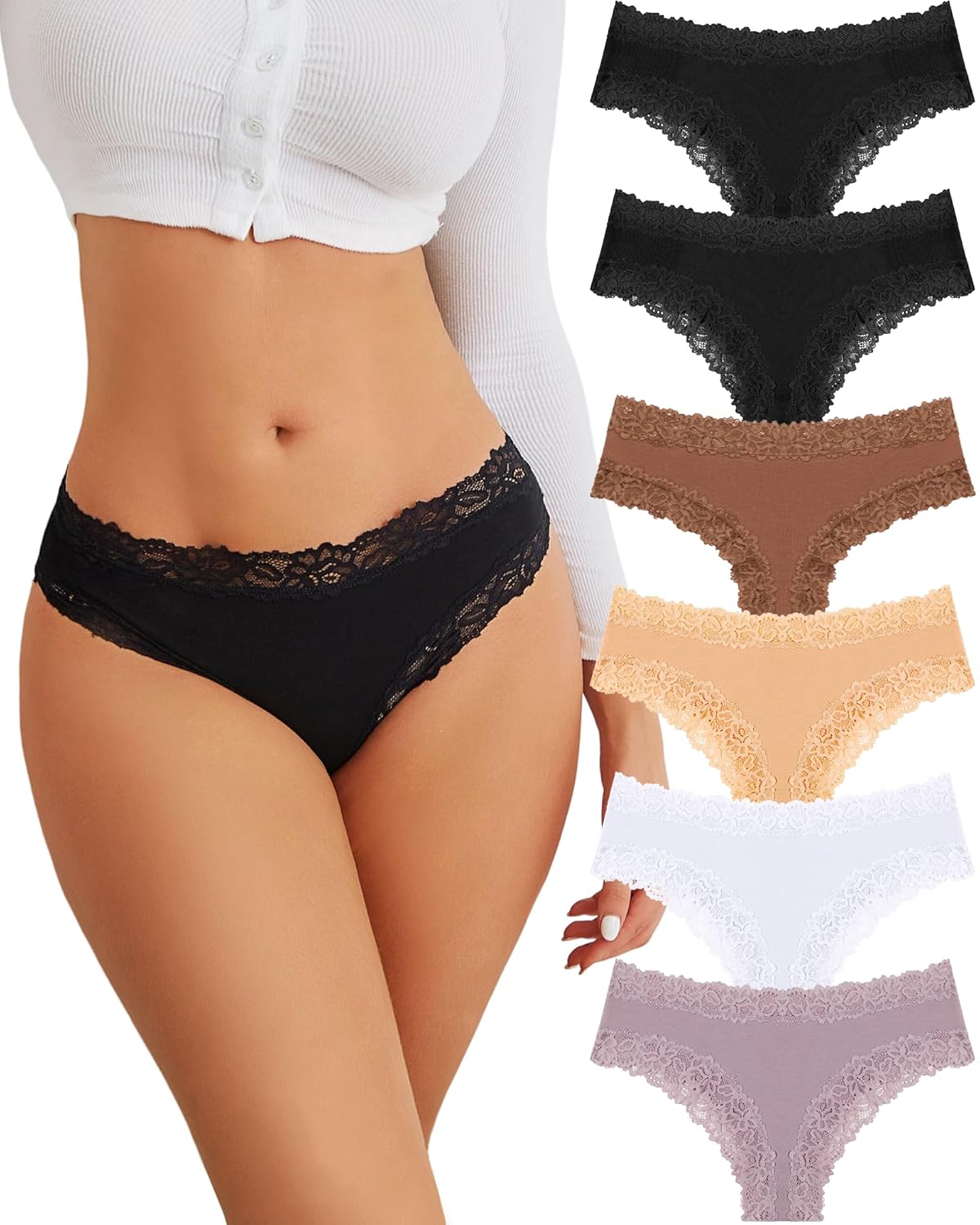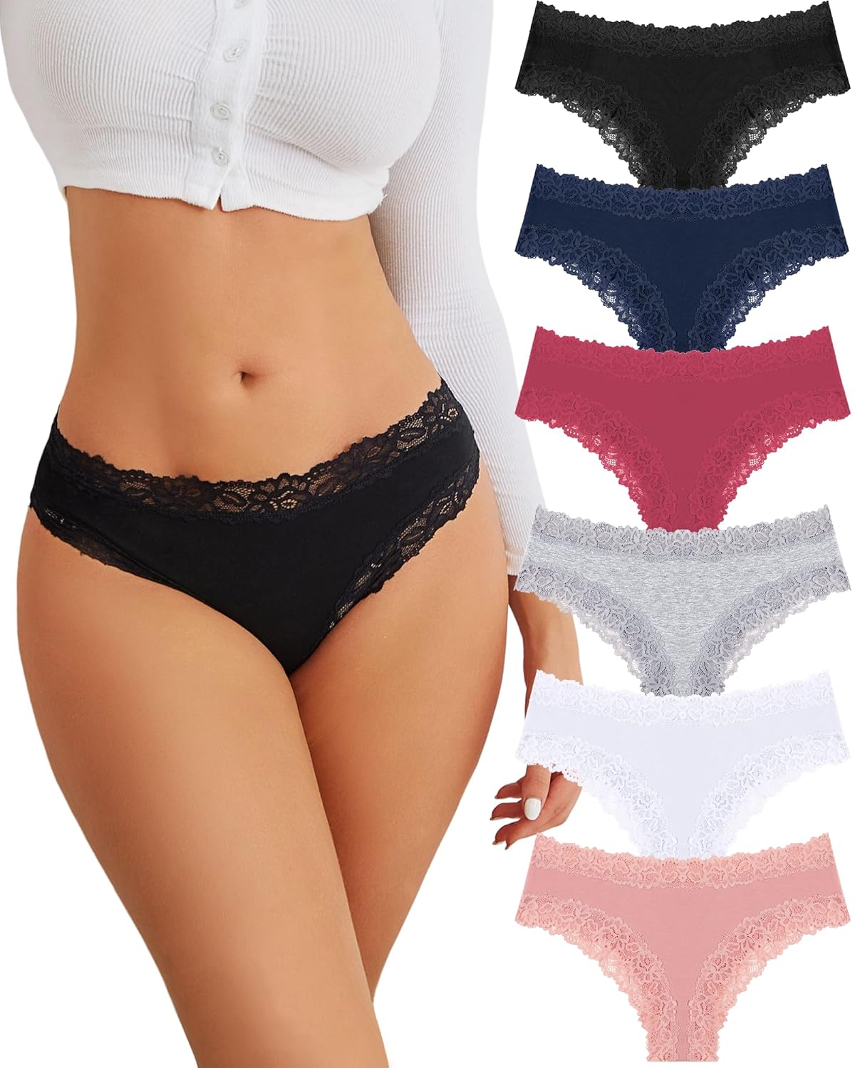 FINETOO Cotton Underwear for Women Sexy Panties Lace Hipster Low Rise Breathable Womens Cheeky 6 Pack S-XL