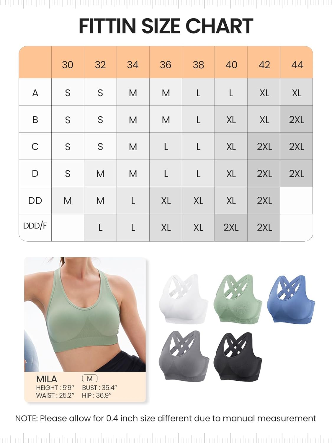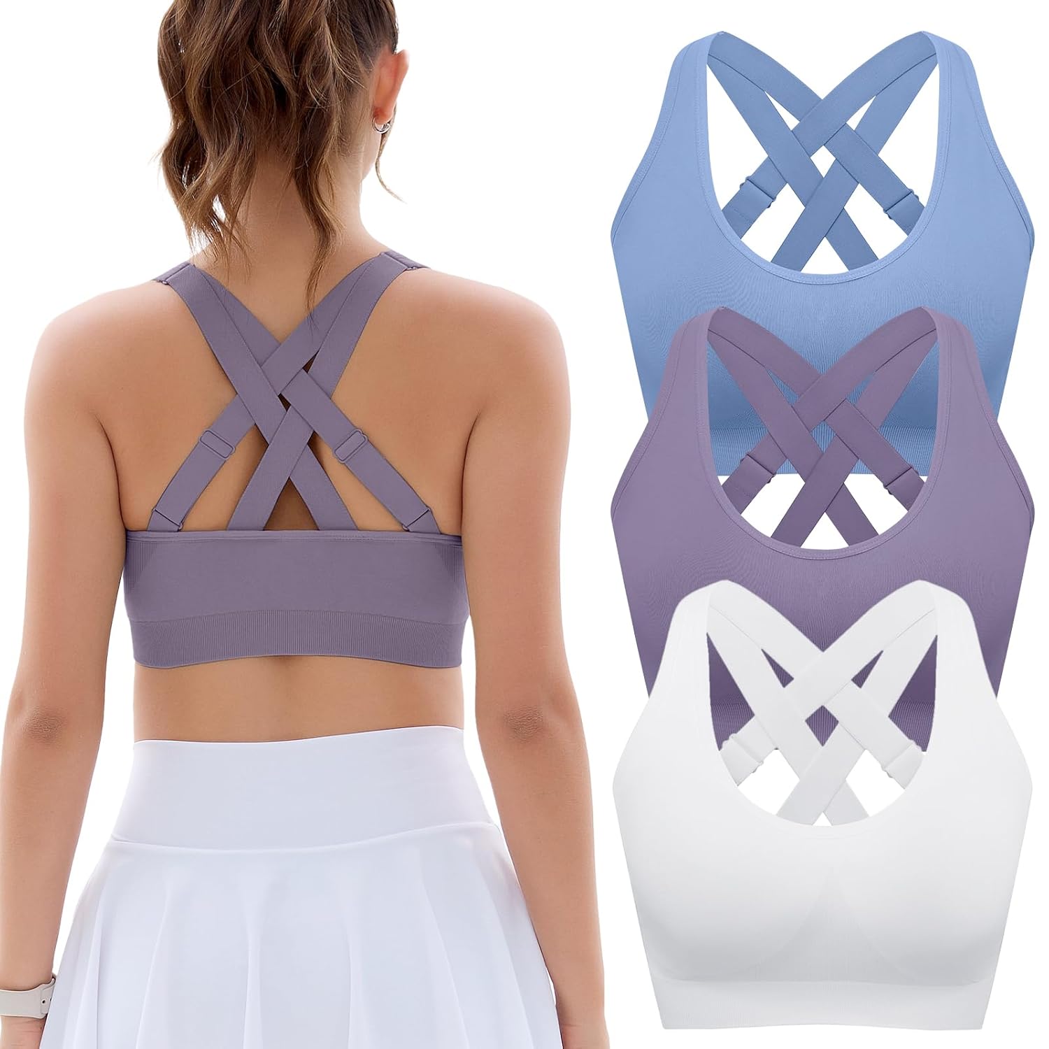 FITTIN Padded Sports Bras for Women: Support Strappy Adjustable Straps Cross Back Sport Bra Pack for Workout Yoga Running Gym
