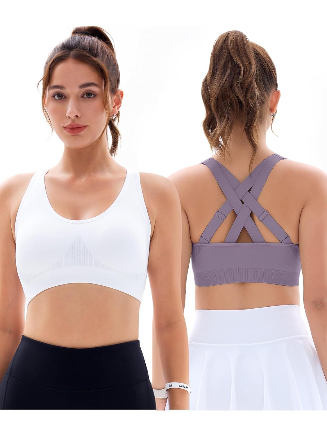 FITTIN Padded Sports Bras for Women: Support Strappy Adjustable Straps Cross Back Sport Bra Pack for Workout Yoga Running Gym