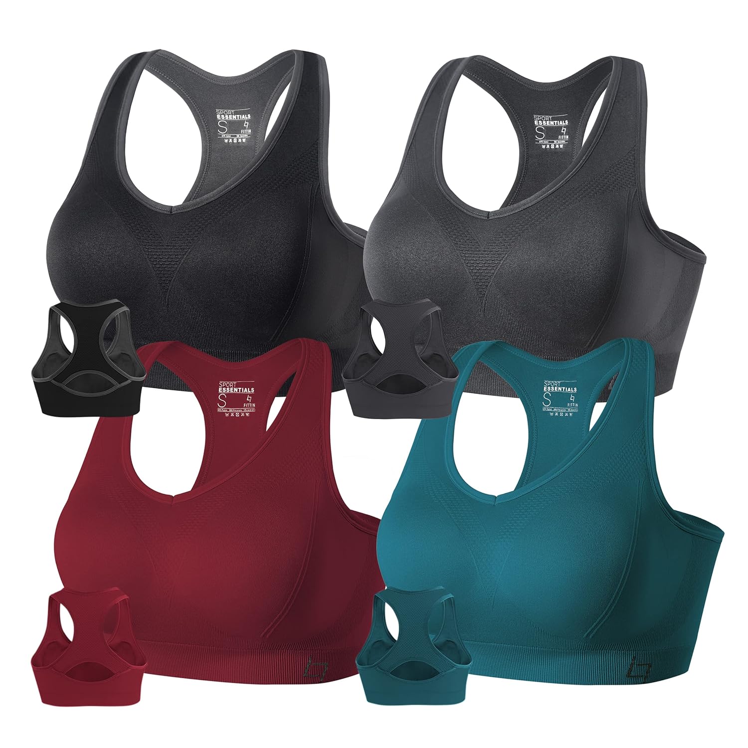 FITTIN Racerback Sports Bras for Women – Padded Seamless Support Bra for Yoga Gym Workout Fitness