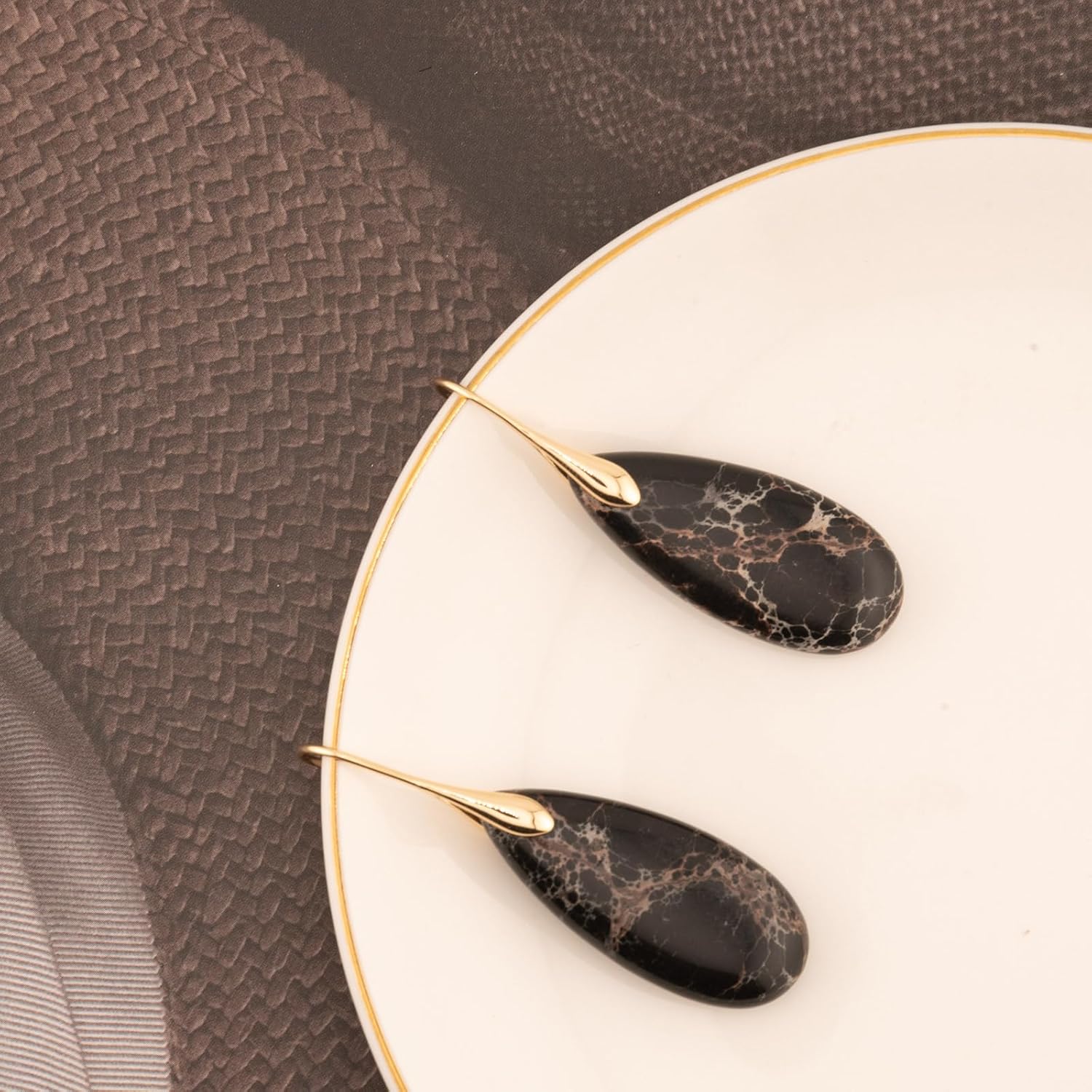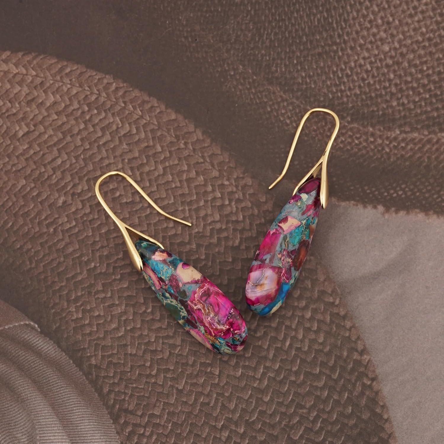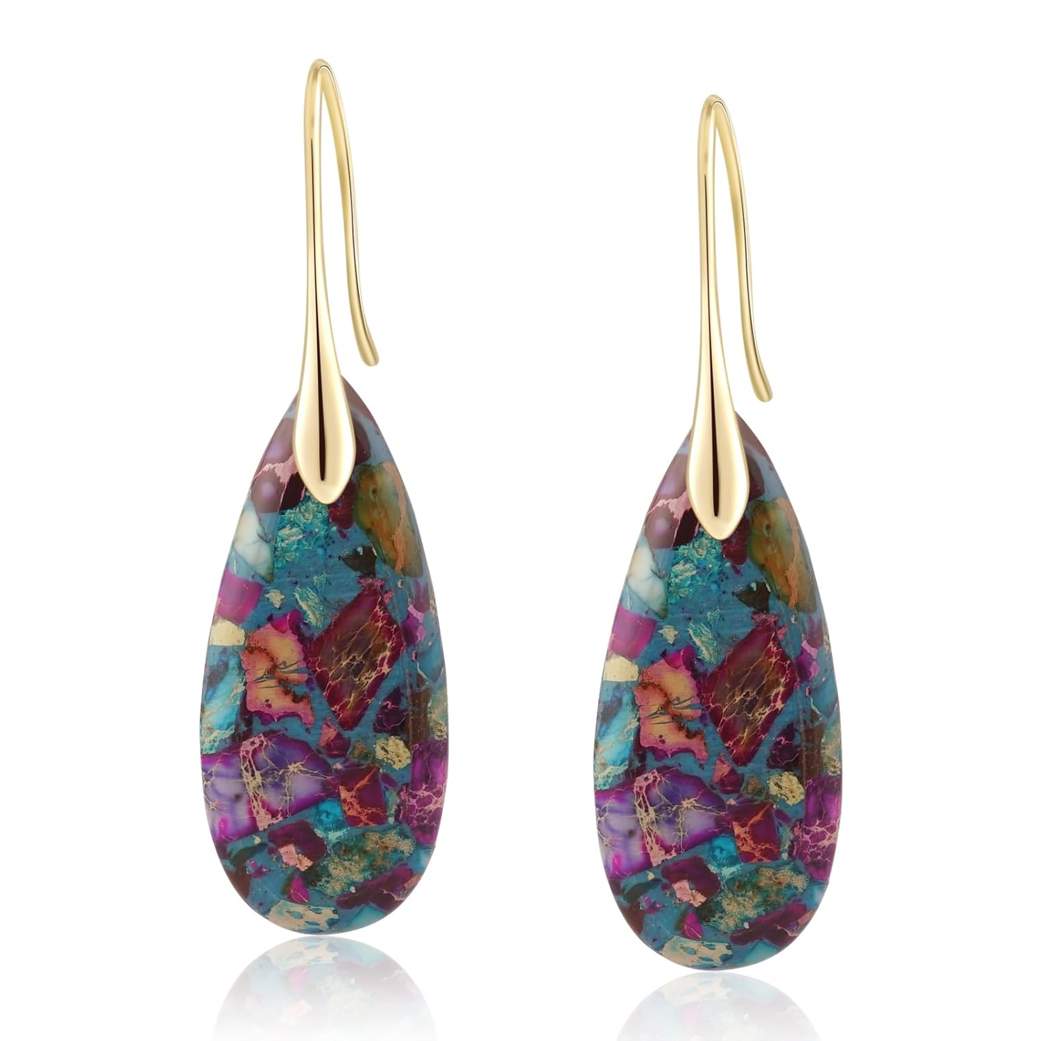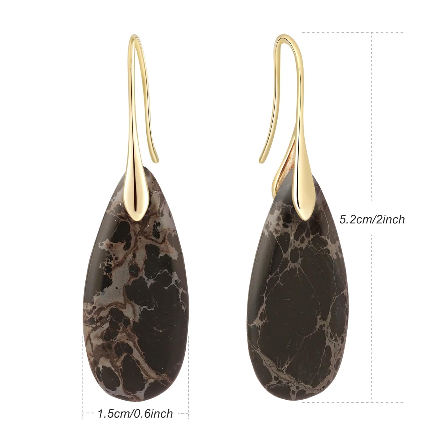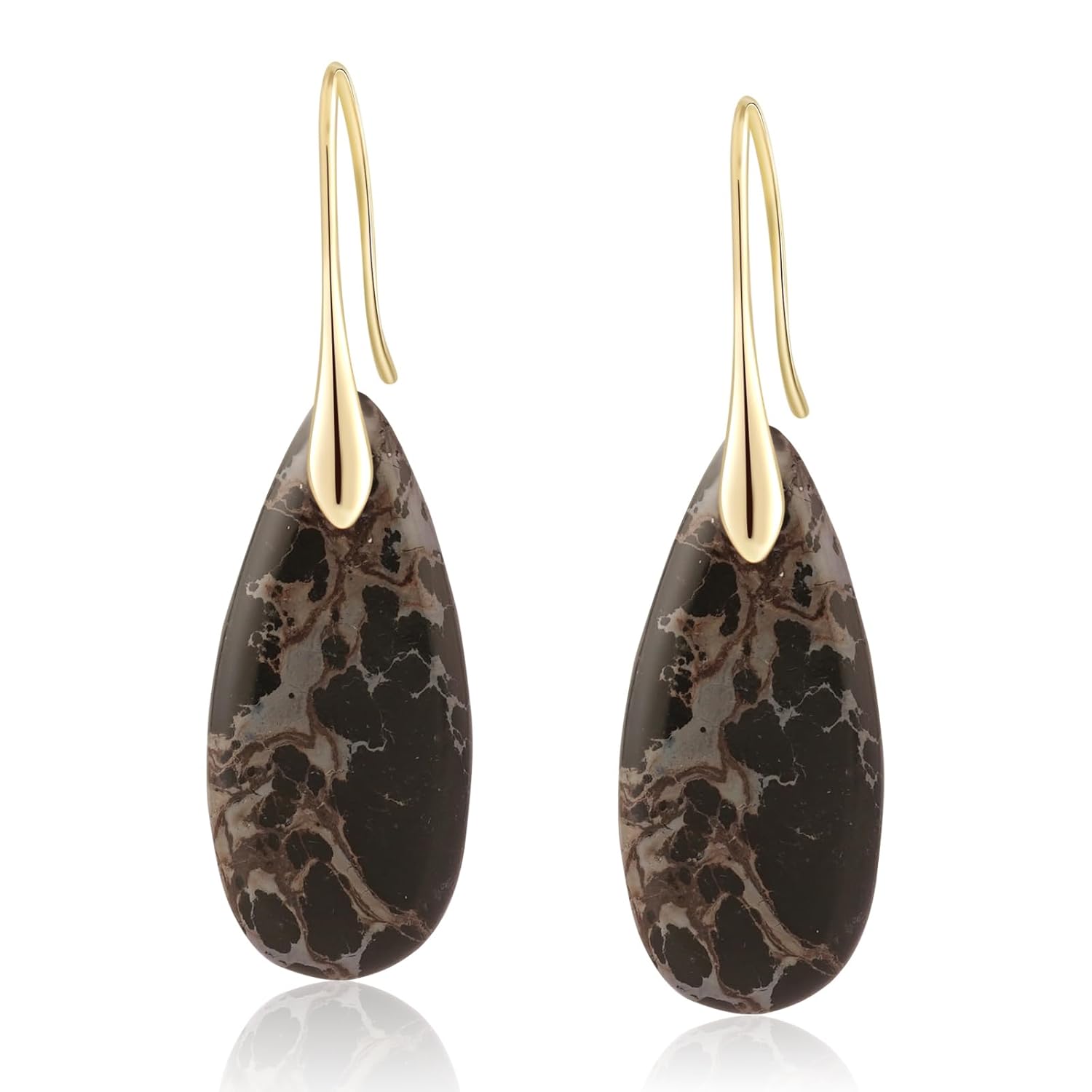 Natural Healing Stone Fishhoop Dangle Drop Earrings Statement Gold silver earrings