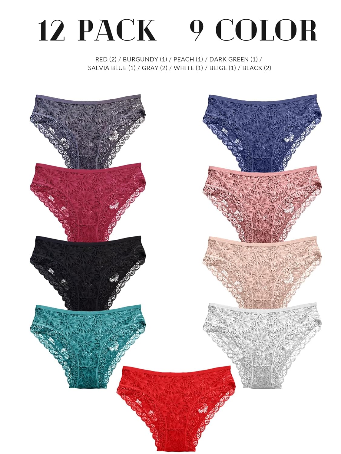 Seamless Underwear for Women Sexy No Show Bikini Panties Lace Ladies Soft Breathable Cotton Bikini for Ladies 12 Pack