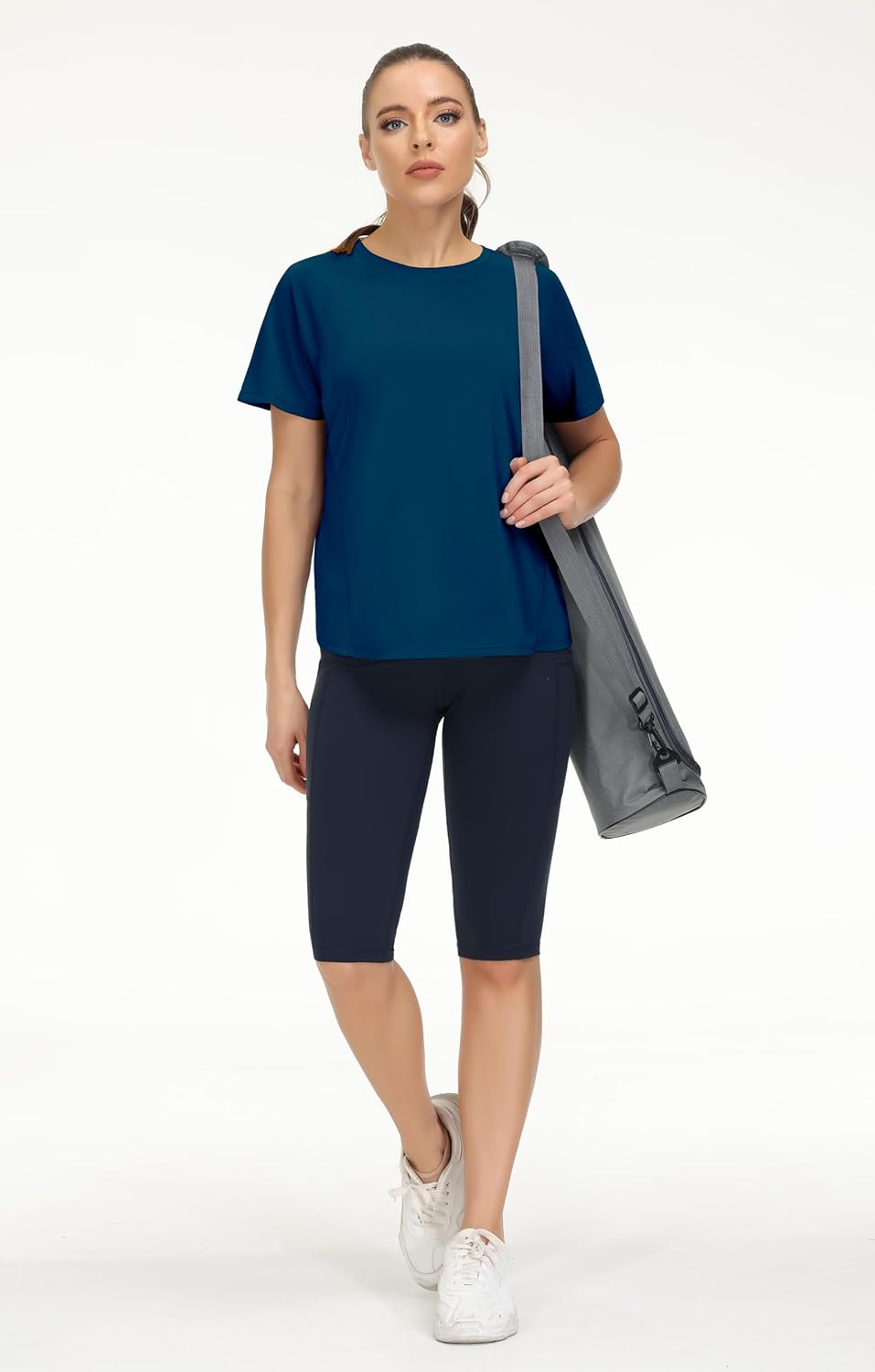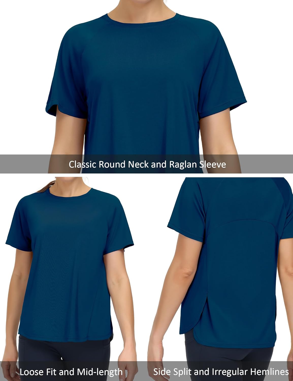 THE GYM PEOPLE Women’s Short Sleeve Workout Shirts Breathable Yoga T-Shirts with Side Slits Athletic Tee Tops