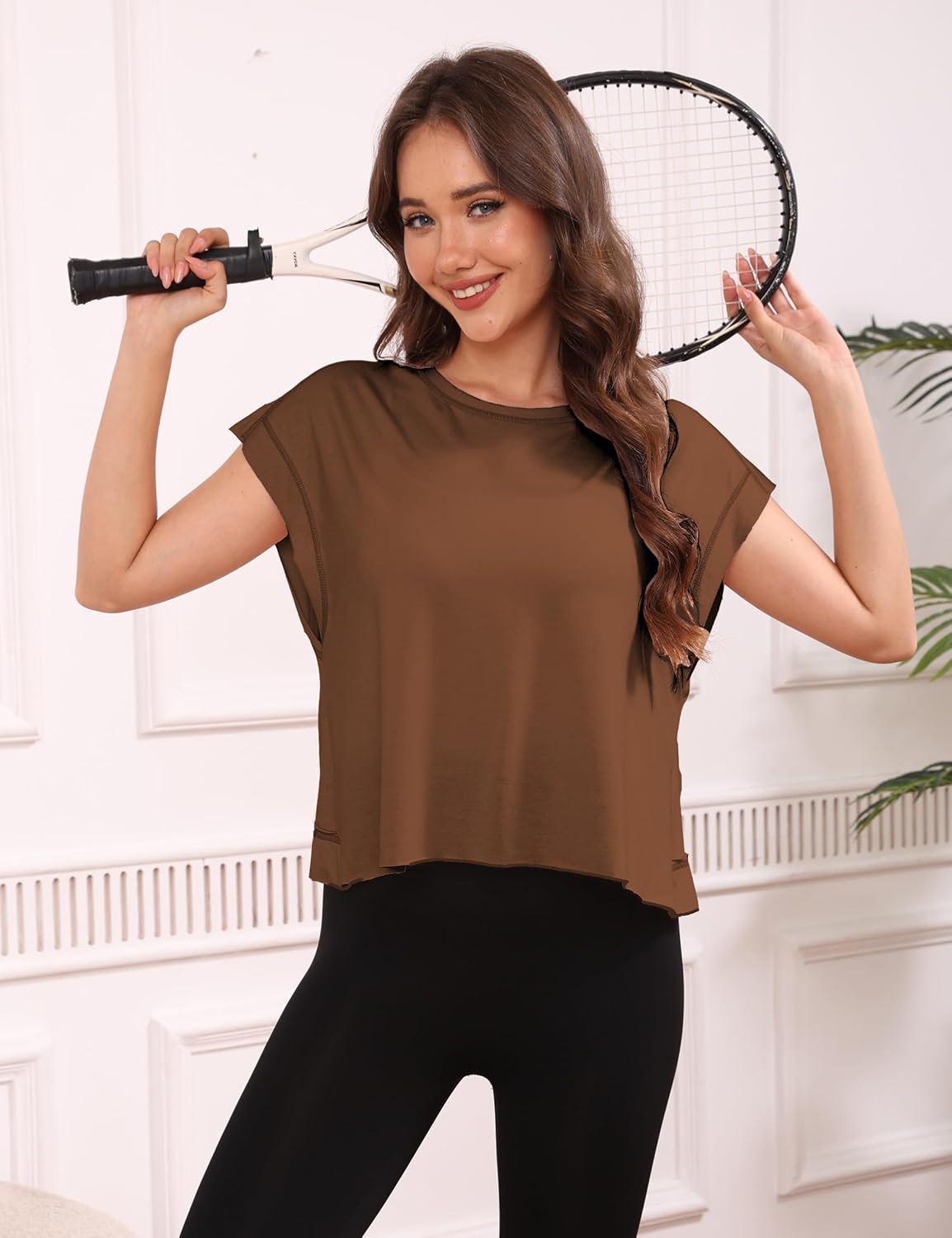 Women Short Sleeve Workout Shirts Open Back Tops Casual Yoga Y2k Athletic Gym Slouchy Crop Running Tees