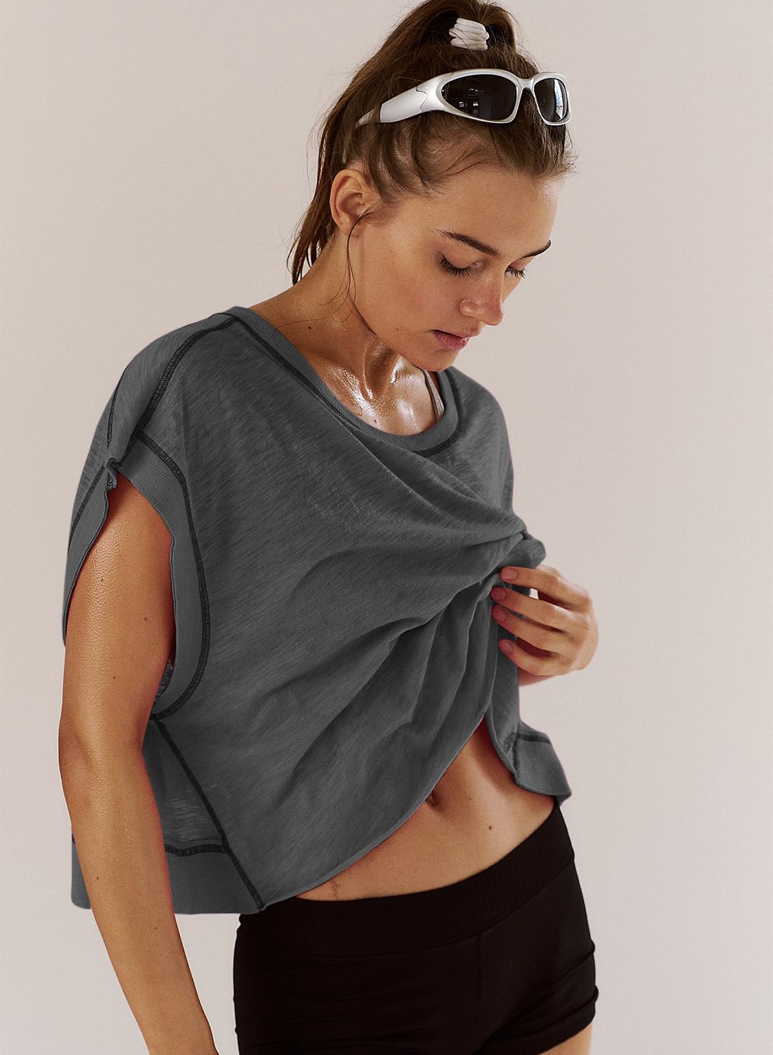 Women Short Sleeve Workout Shirts Open Back Tops Casual Yoga Y2k Athletic Gym Slouchy Crop Running Tees