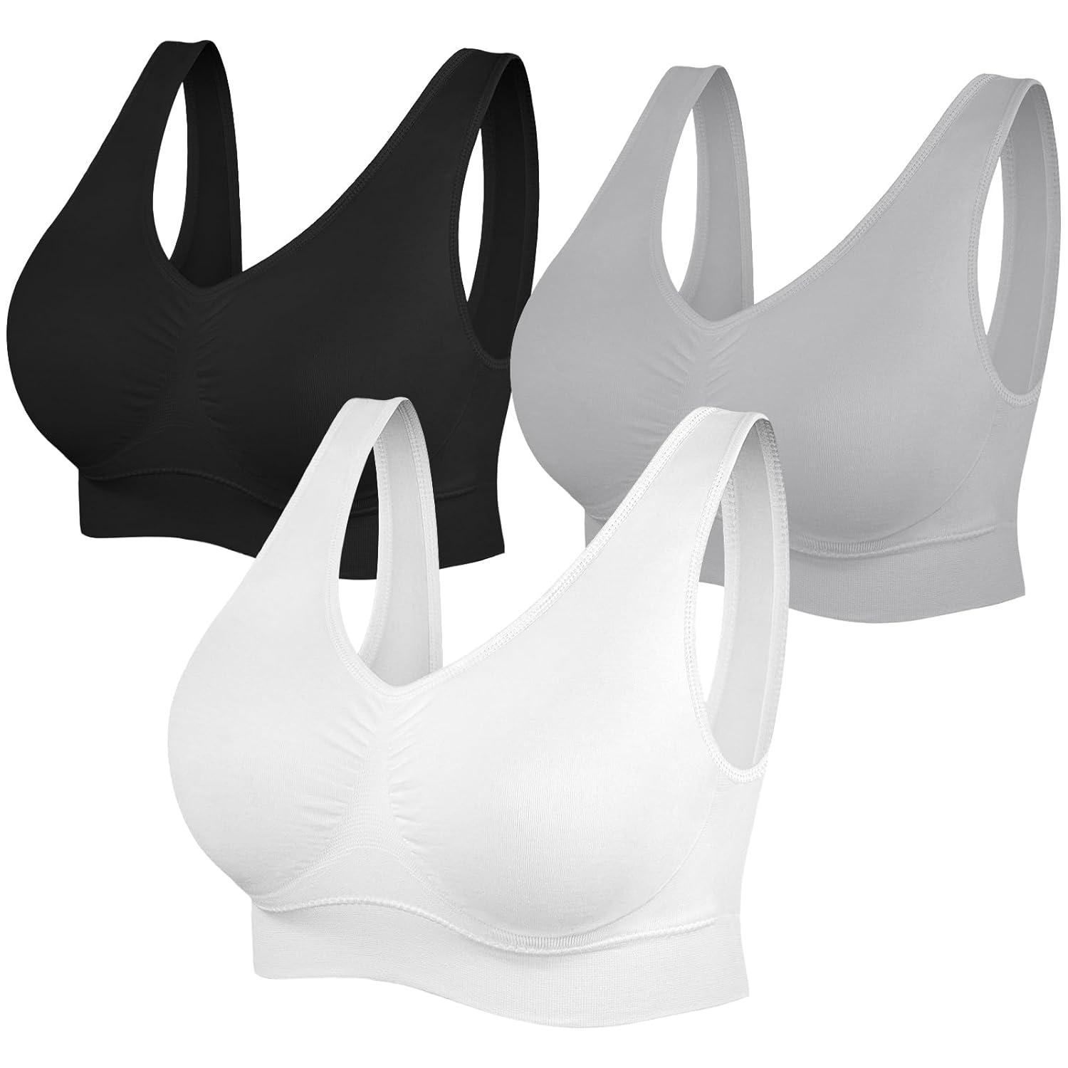 Womens Sports Bras, Yoga Comfort Seamless Stretchy Sports Bra for Women 3 Pack