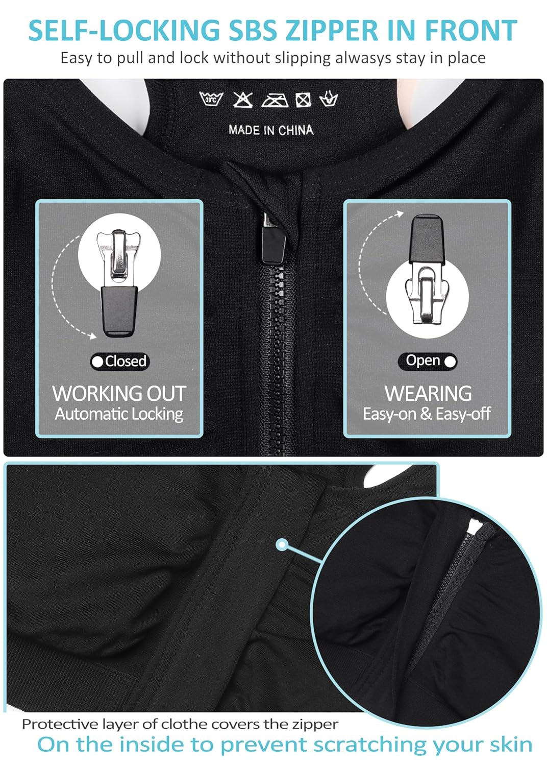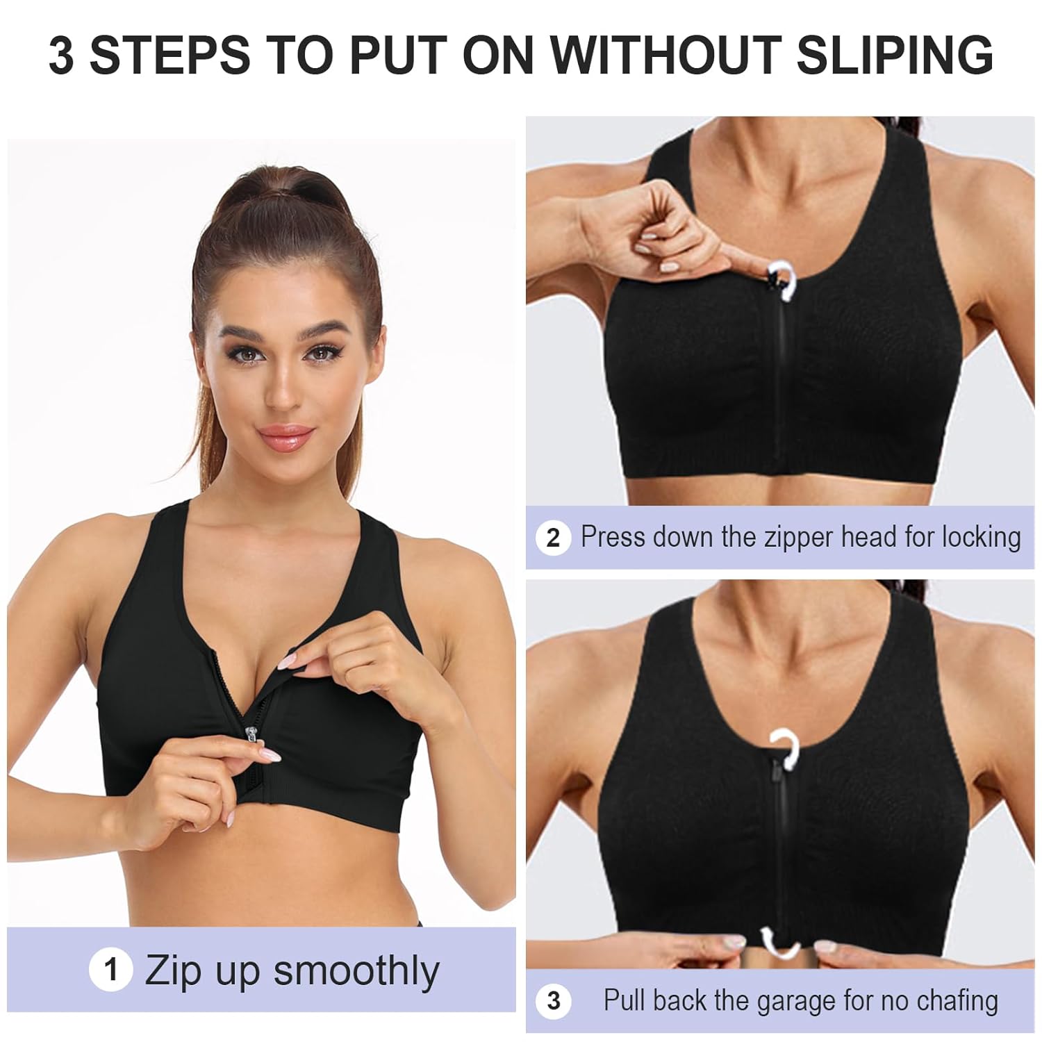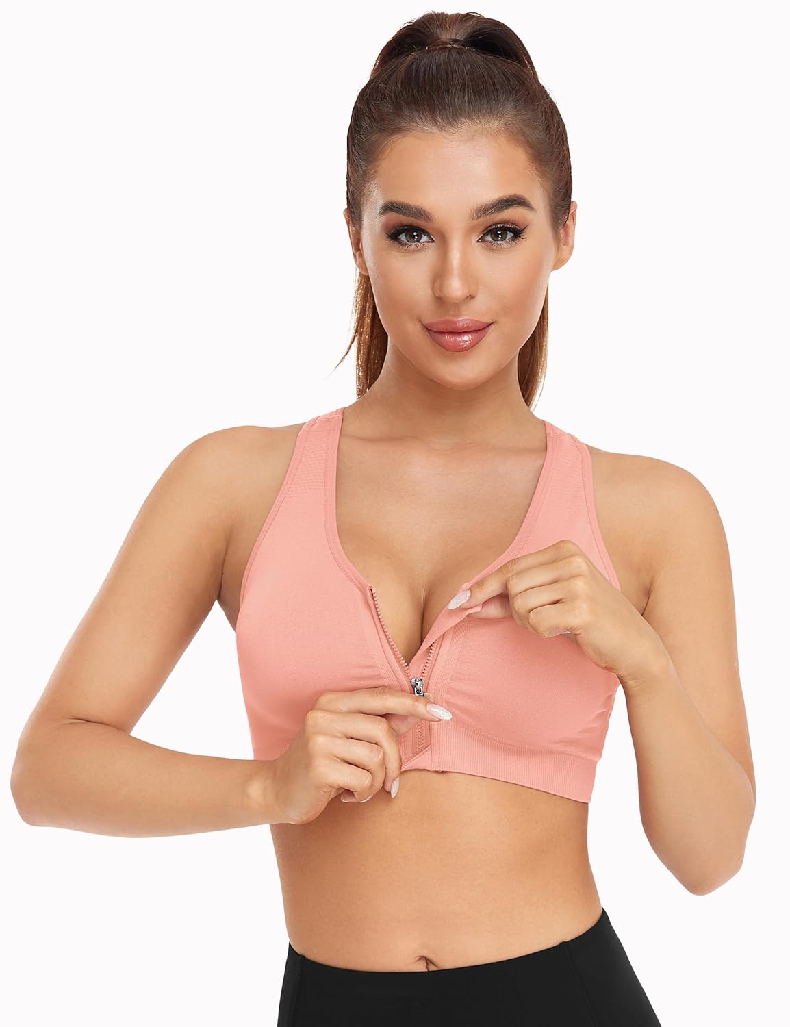 Women’s Zip Front Sports Bra Wireless Post-Surgery Bra Active Yoga Sports Bras